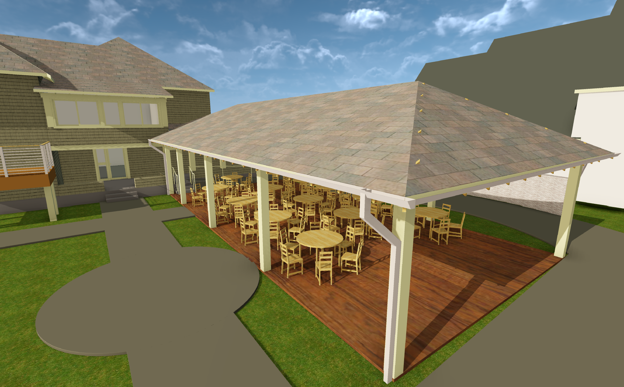 After much prayer, thought, and exploration of possible solutions, the Newman Pavilion project was born. This space will allow for us to have between 90 and 100 students at 5ft round tables and between 100 and 120 students in lecture style seating. The pavilion will be an open space with the ability to roll down vinyl walls during inclement weather. We also plan to have heaters fixed to the perimeter of structure for cold days.